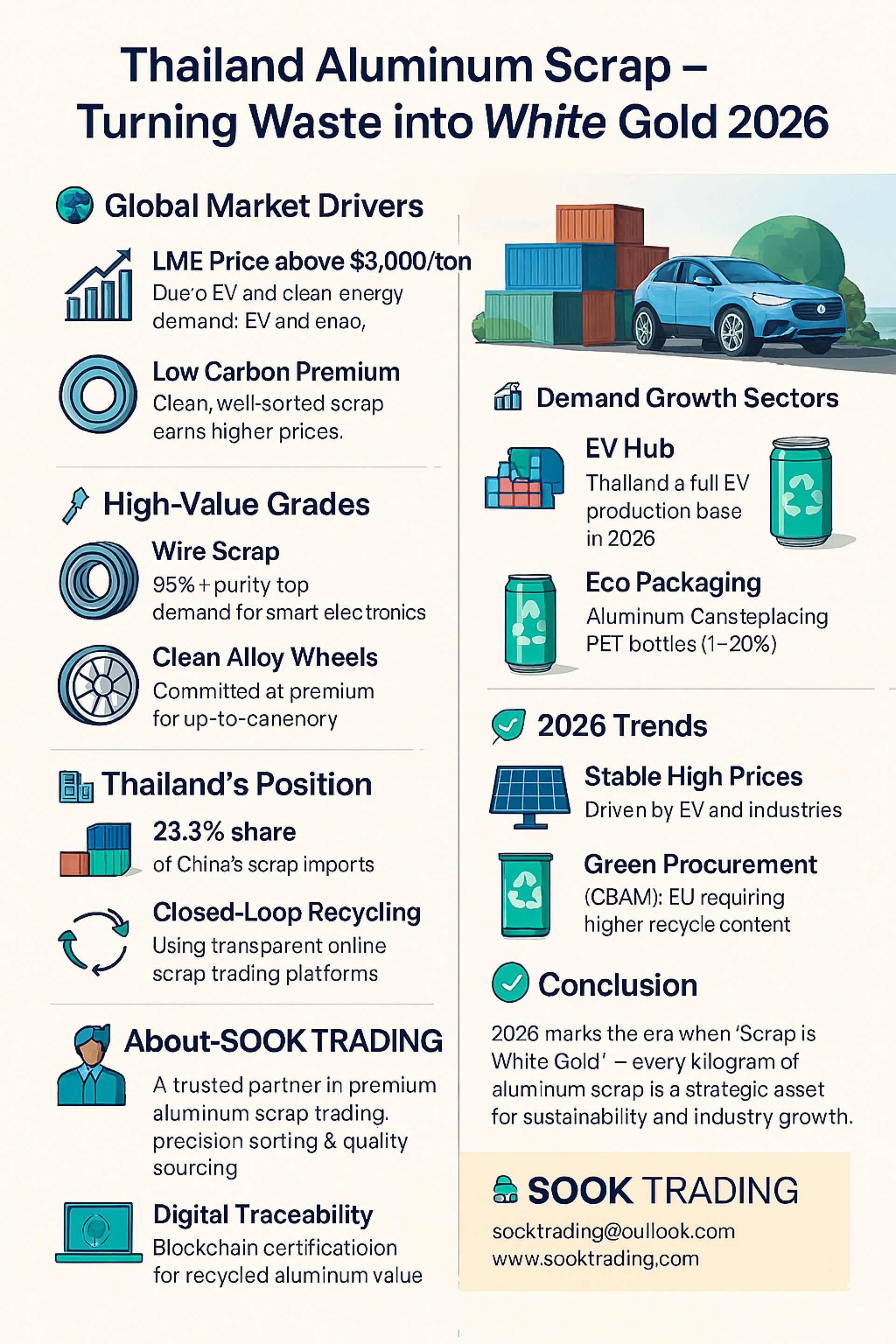 2026 marks the era when Thailand’s aluminum scrap industry will “turn waste into assets.” With EU CBAM pressure and strong demand from EV and eco-packaging sectors, aluminum scrap is set to become a cornerstone of both economic growth and environmental sustainability.