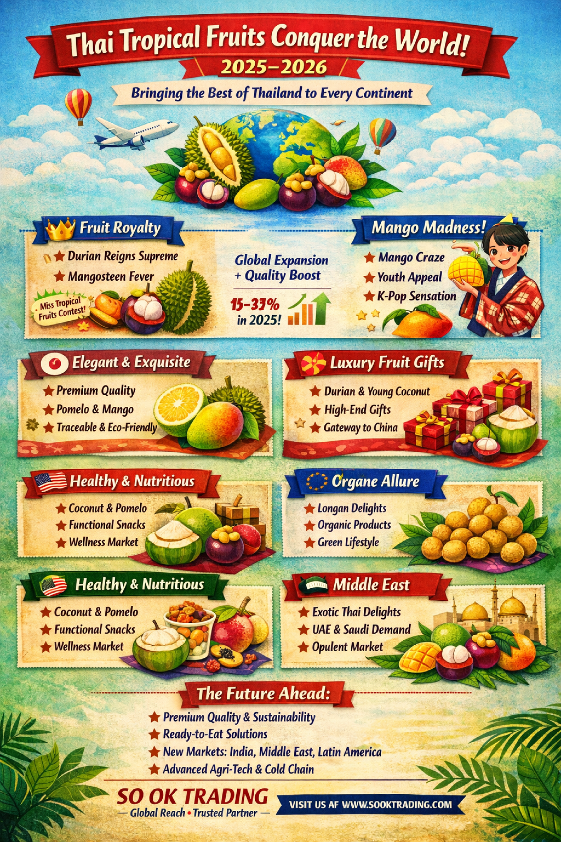 “Land of Tropical Fruits: Thai Fruits Rising as Global Brands — From Orchards to Luxury Markets, Winning Hearts Worldwide with Durian, Mangosteen, and Mango, the Global Stars of 2026” Article by SO OK TRADING · March 11, 2026