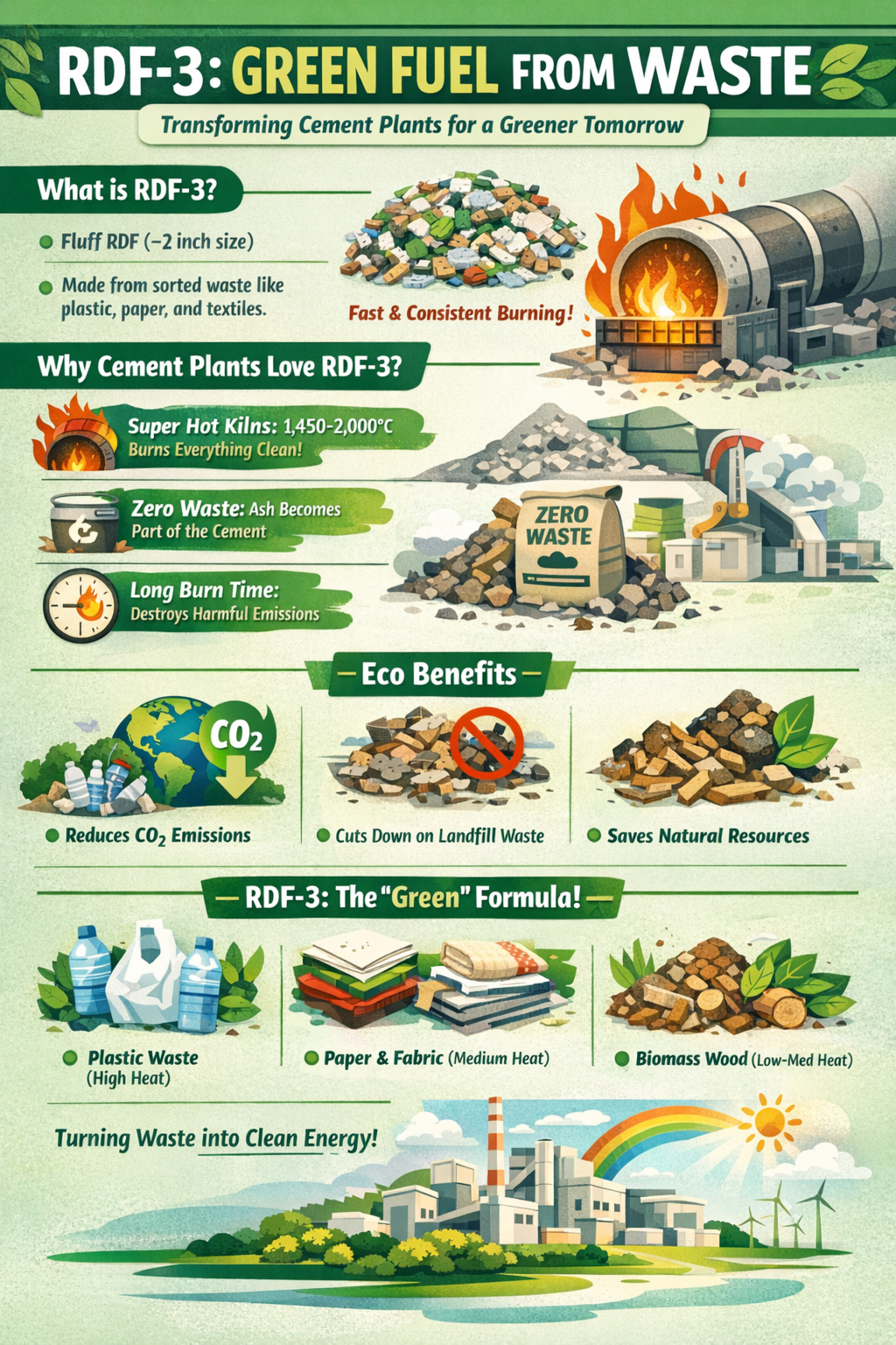 Imagine cement plants that once relied heavily on costly coal and emitted massive amounts of carbon. Today, they are turning to RDF (Refuse Derived Fuel)—fuel made from waste—to cut costs and confidently move toward Net Zero.