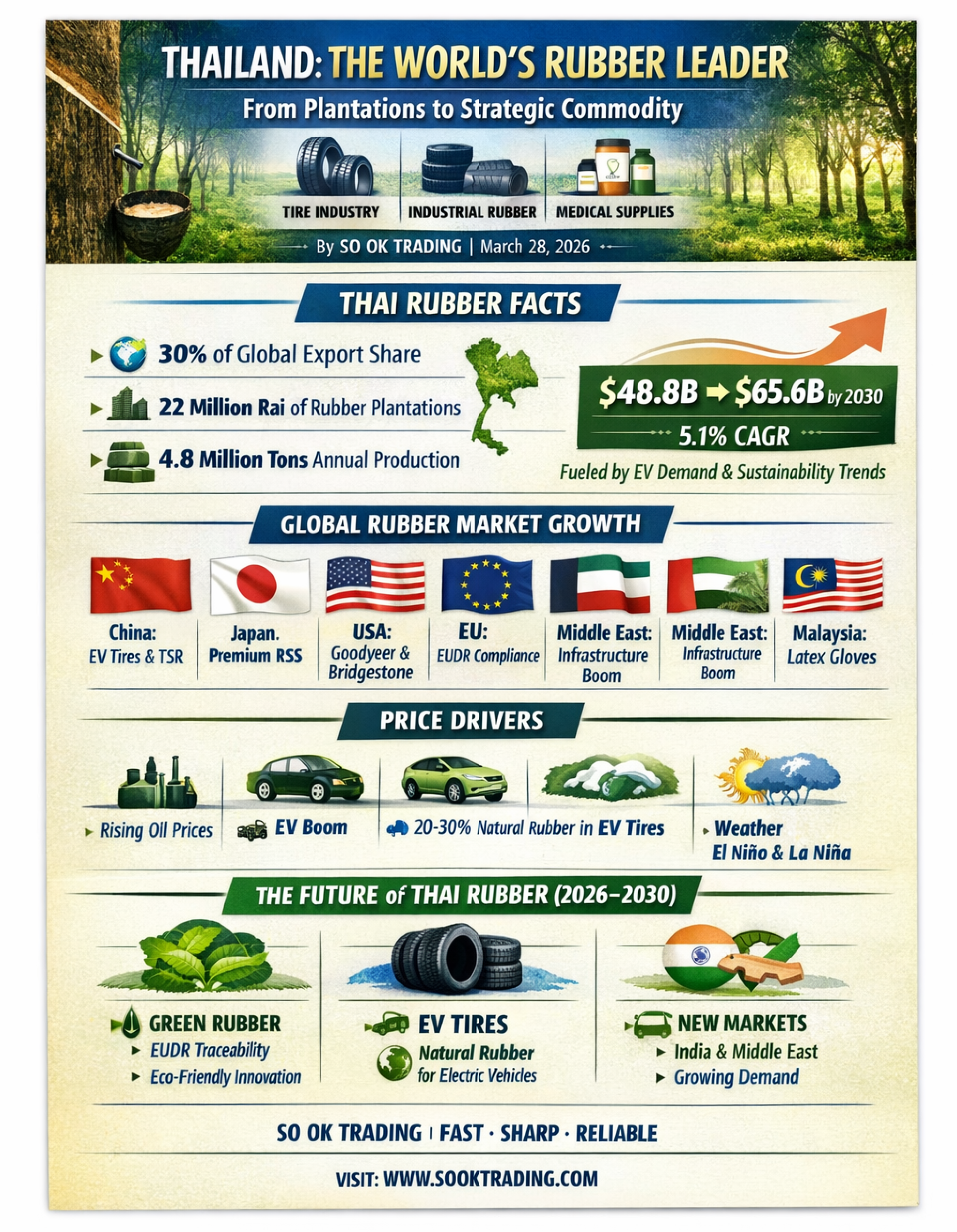 “Thai Natural Rubber: The Soft Power Driving the World – A Strategic Commodity of the New Century in the EV and BCG Era. Thai Rubber: The Essential Resource Demanded by Global Industries” Article by SO OK TRADING | March 26, 2026