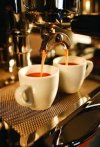 Espresso: A concentrated coffee beverage brewed by forcing hot, pressurized water through finely-ground coffee. It forms the base of many other drinks.