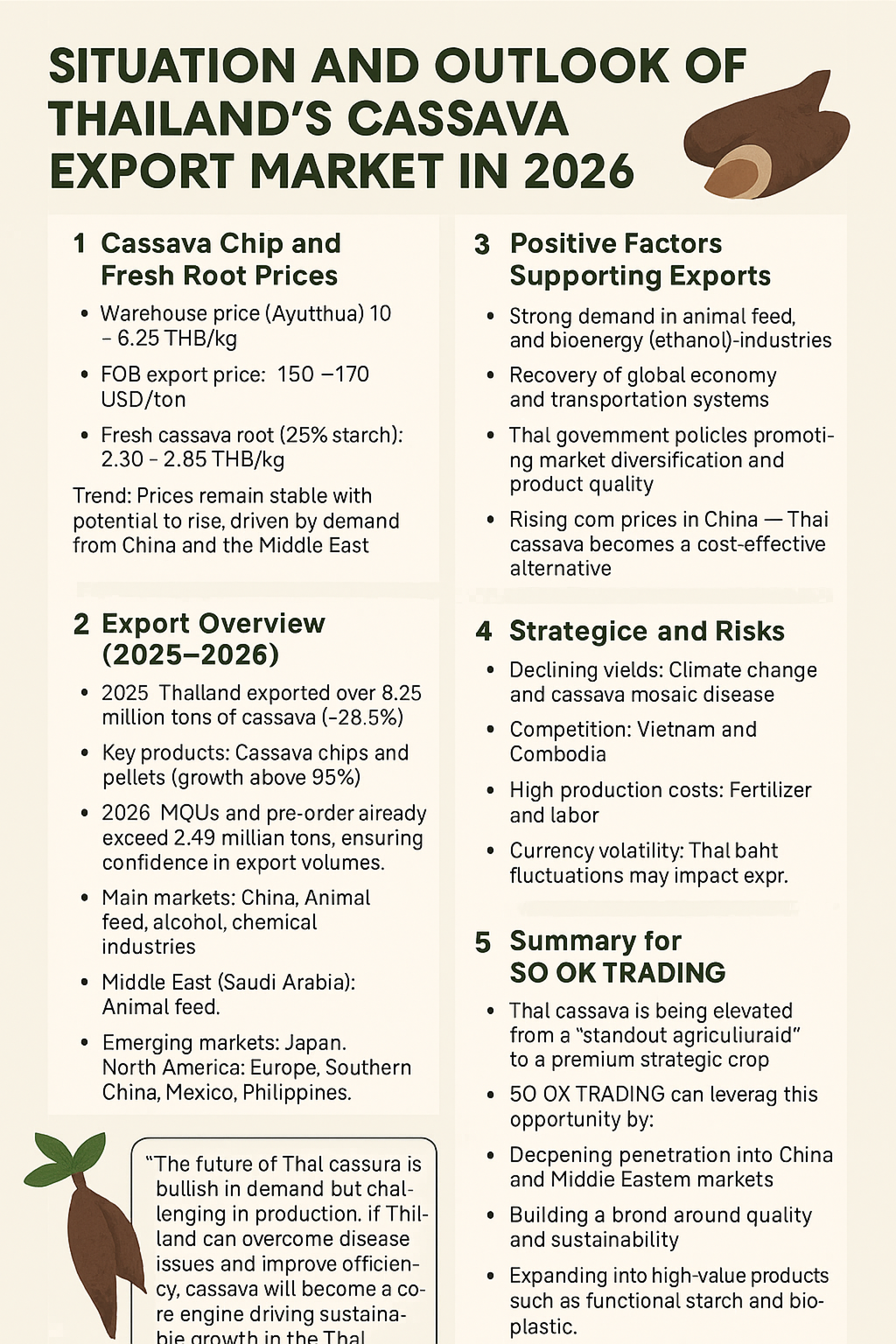 “The future of Thai cassava is bullish in demand but challenging in production. If Thailand can overcome disease issues and improve efficiency, cassava will become a core engine driving sustainable growth in the Thai agricultural economy.”