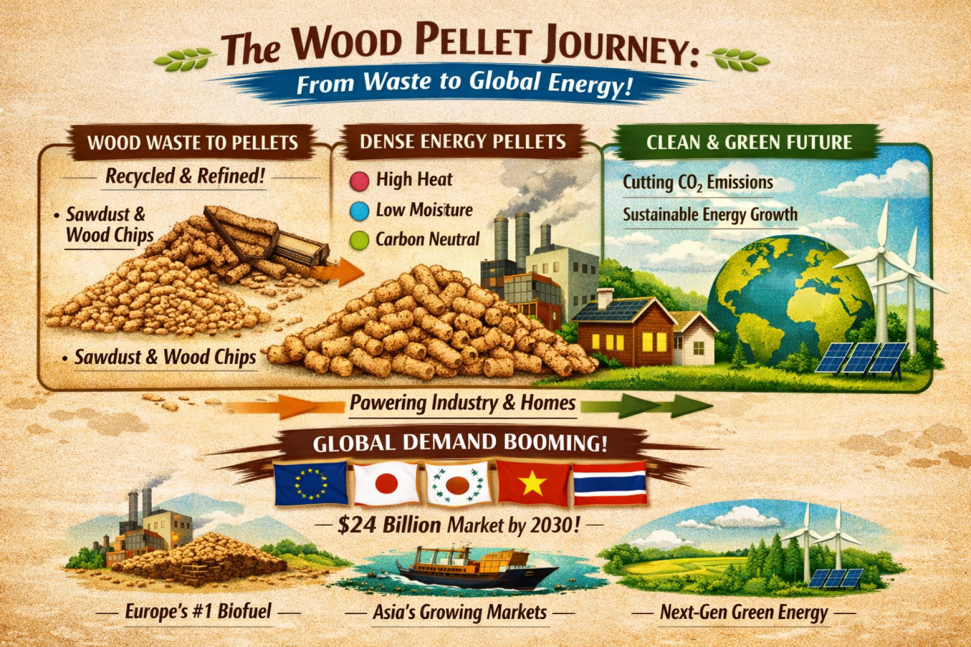 Wood Pellets 的故事始于不起眼的木屑,却正在成为全球能源转型的关键力量。