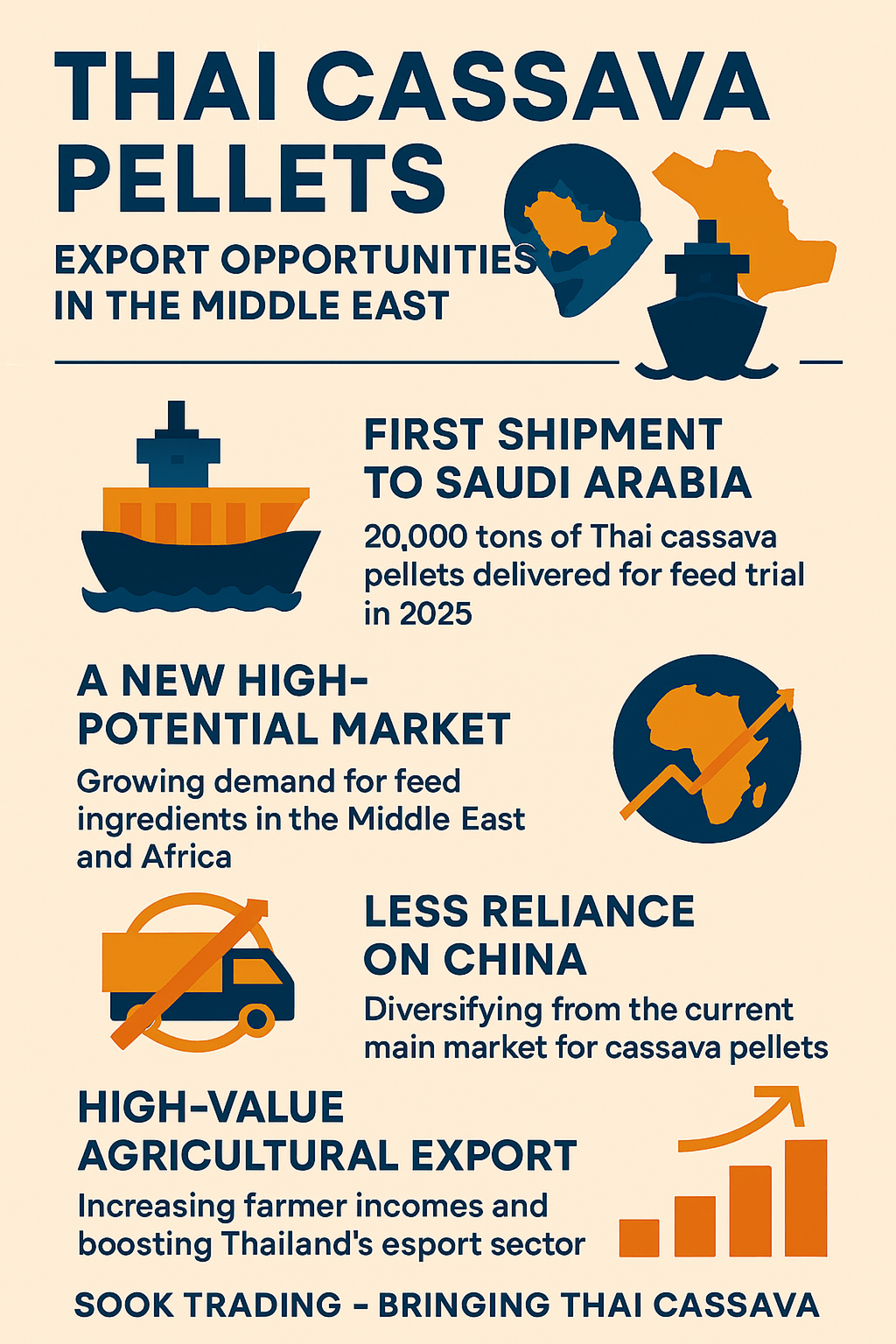 泰国木薯颗粒正在成为高潜力的农业出口产品。最近,泰国首次历史性地向 沙特阿拉伯出口了20,000吨。这一里程碑标志着中东和非洲新市场的开启,为泰国生产商和出口商提供了摆脱对中国依赖、创造更大价值的机会。