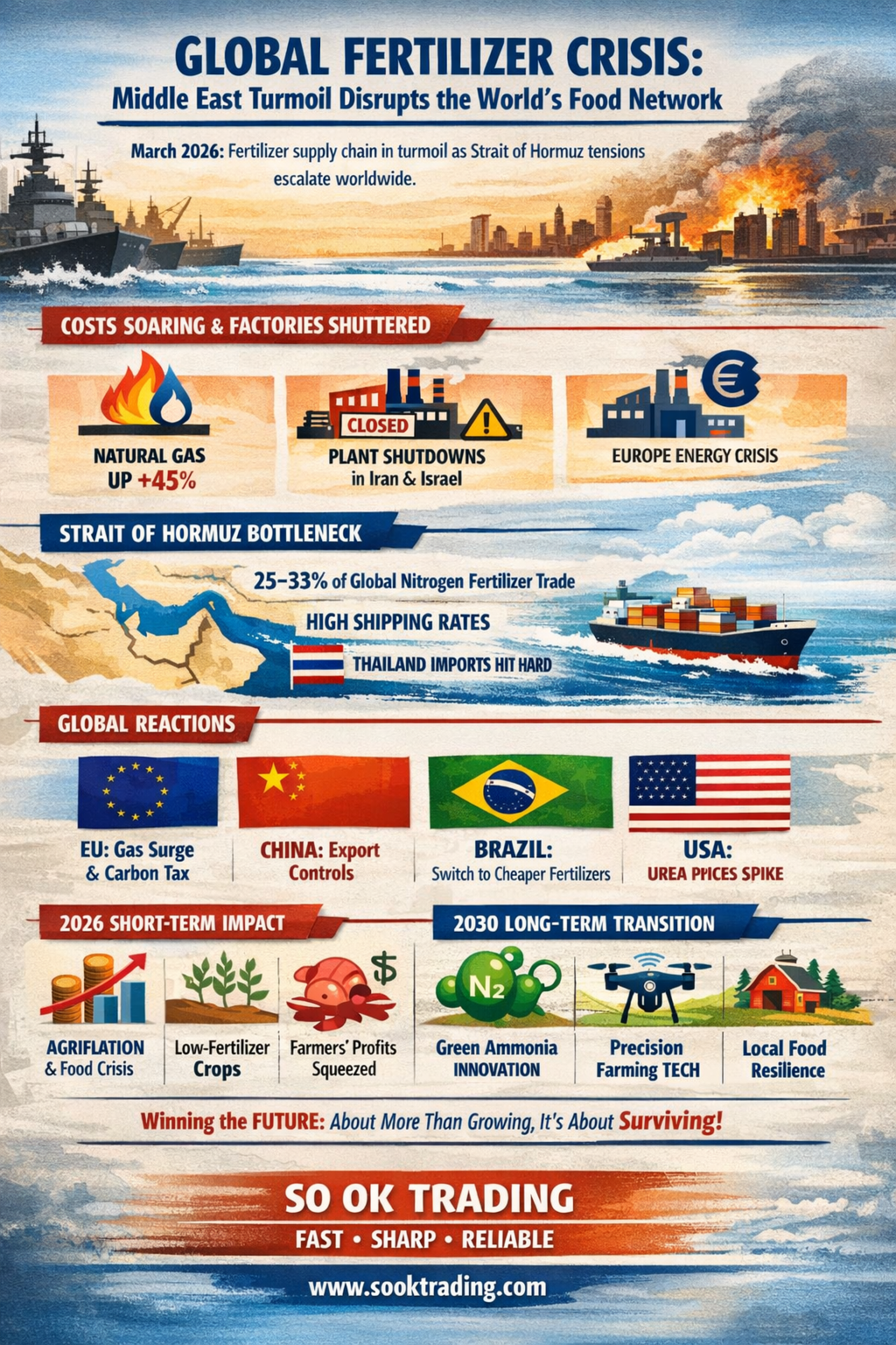 「肥料不足の戦争:ホルムズ海峡が世界を揺るがす 肥料から食卓へ、食料安全保障を揺るがす危機」 — SO OK TRADING による記事