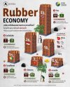80% ของการส่งออก อยู่ในรูปวัตถุดิบขั้นต้น ได้แก่ ยางแผ่นรมควัน, ยางแท่ง, น้ำยางข้น