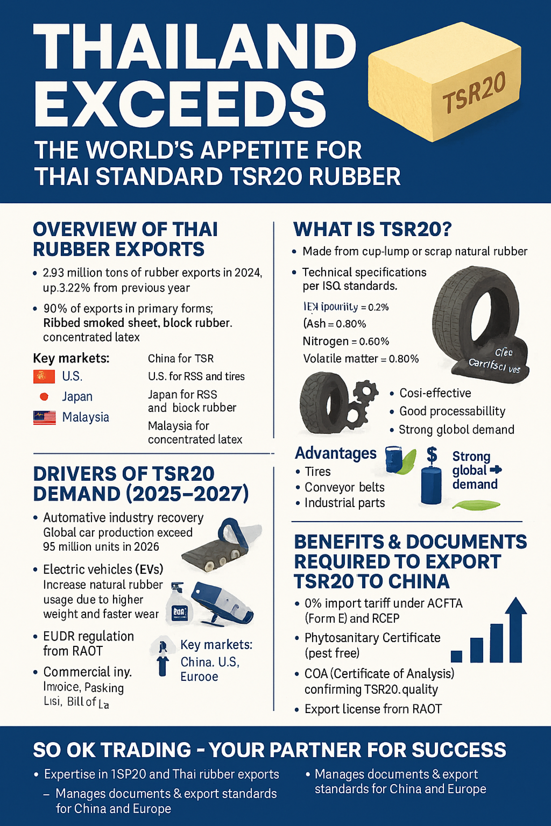 บริษัท SO OK TRADING เป็นผู้เชี่ยวชาญด้านการส่งออกยาง TSR20 และผลิตภัณฑ์ยางไทยสู่ตลาดโลก ด้วยจุดแข็งที่แตกต่าง: