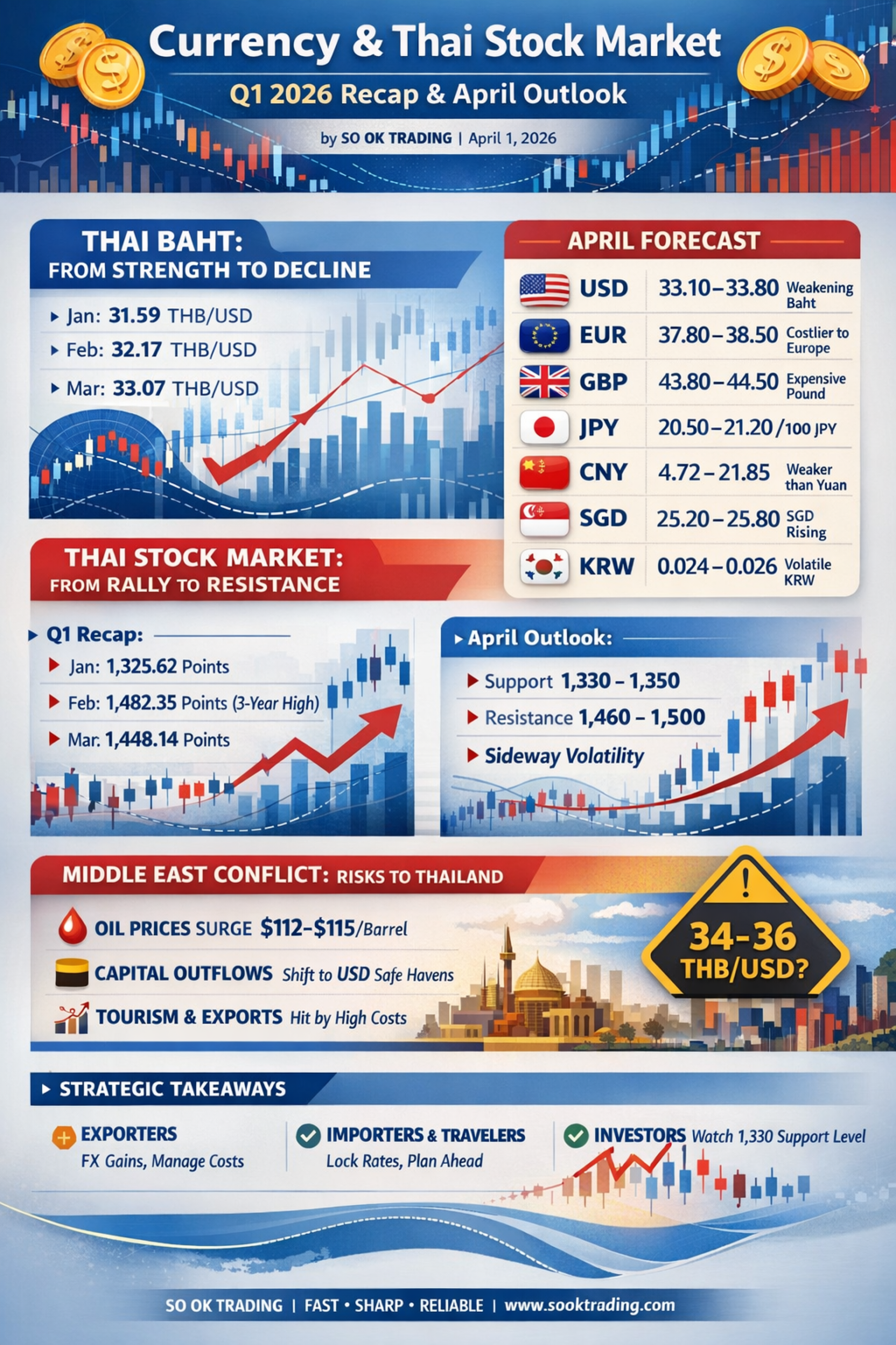 สงคราม น้ำมัน ดอลลาร์: เจาะลึกค่าเงินบาท & ตลาดหุ้นไทย Q1/2569 สู่แนวโน้มเมษายนในยุคความผันผวนสูง : บทความโดย SO OK TRADING: 1เมษายน 2026